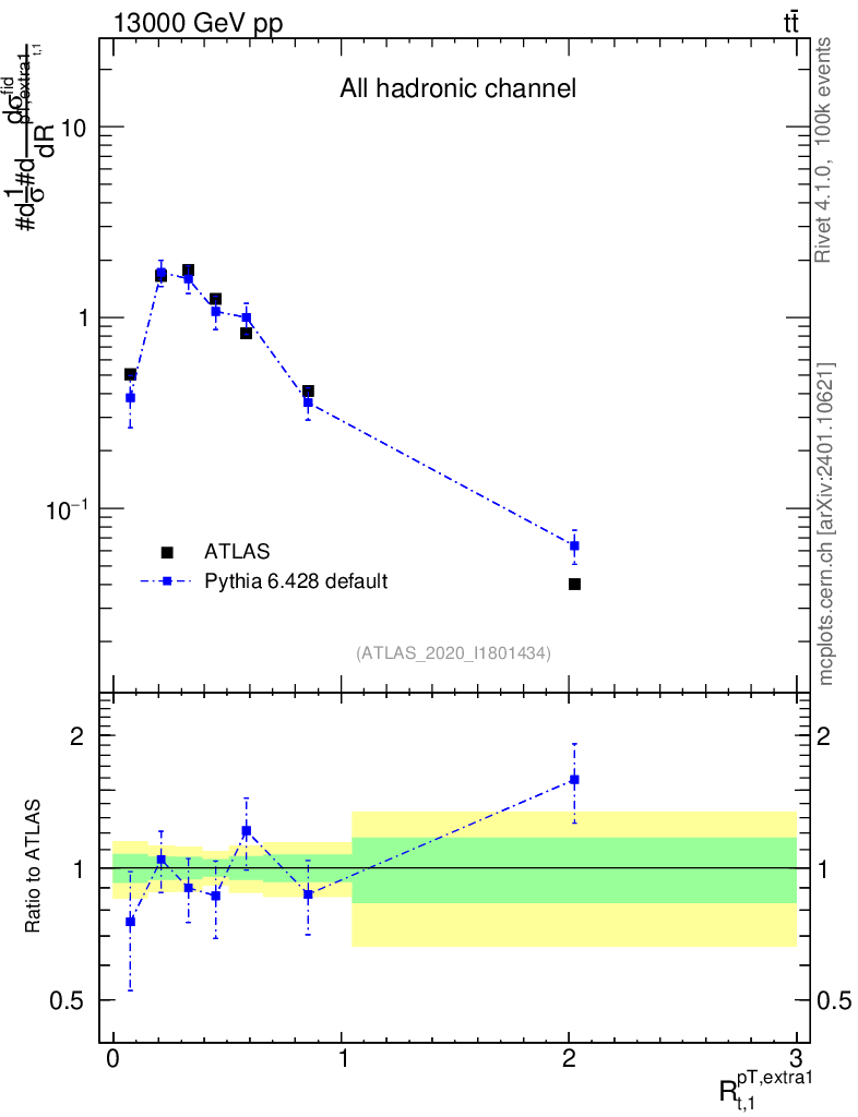 Lines: data, pythia6 6.428 default |