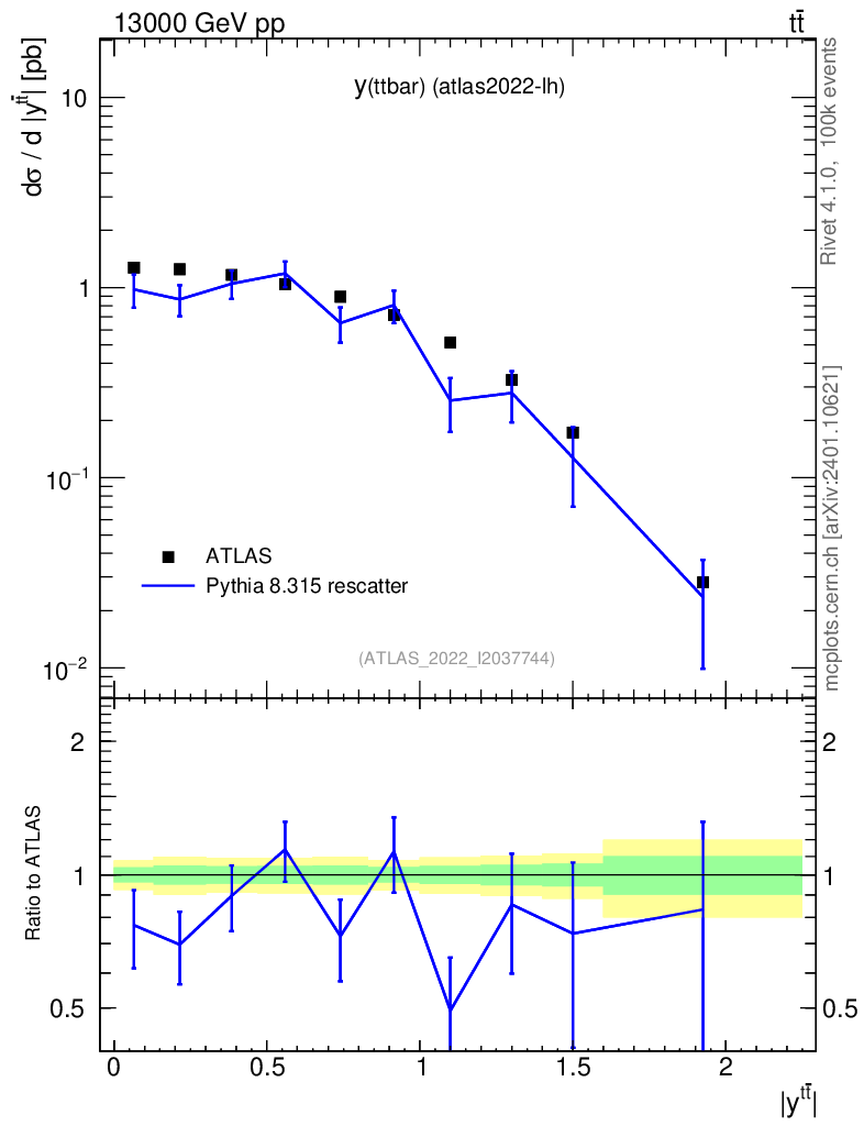 Lines: data, pythia8 8.315 rescatter |