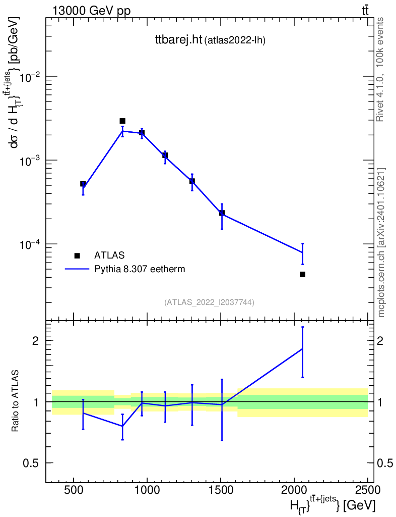 Lines: data, pythia8 8.307 eetherm | compare with other tunes
