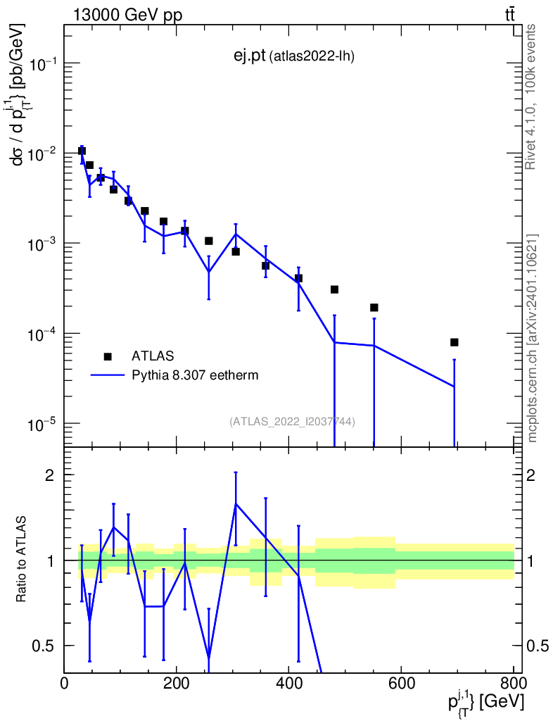 Lines: data, pythia8 8.307 eetherm |
