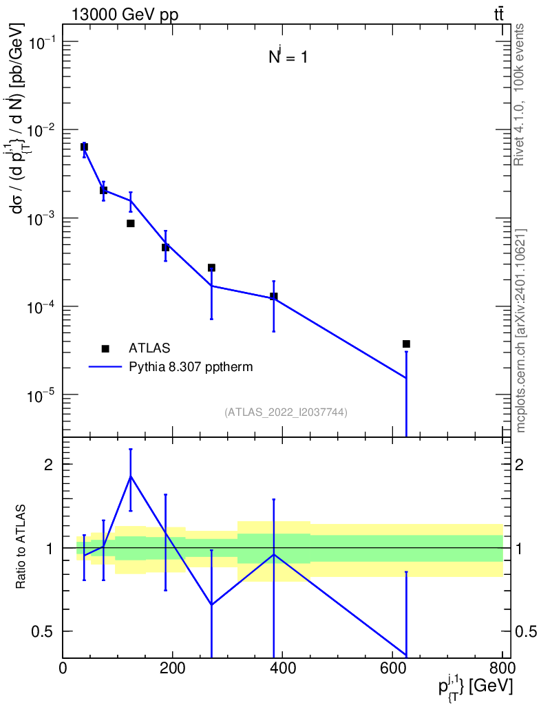 Lines: data, pythia8 8.307 pptherm |
