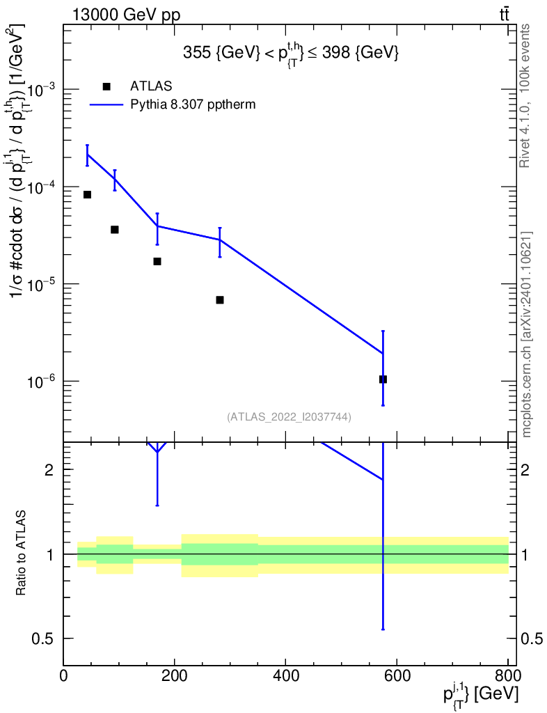 Lines: data, pythia8 8.307 pptherm |