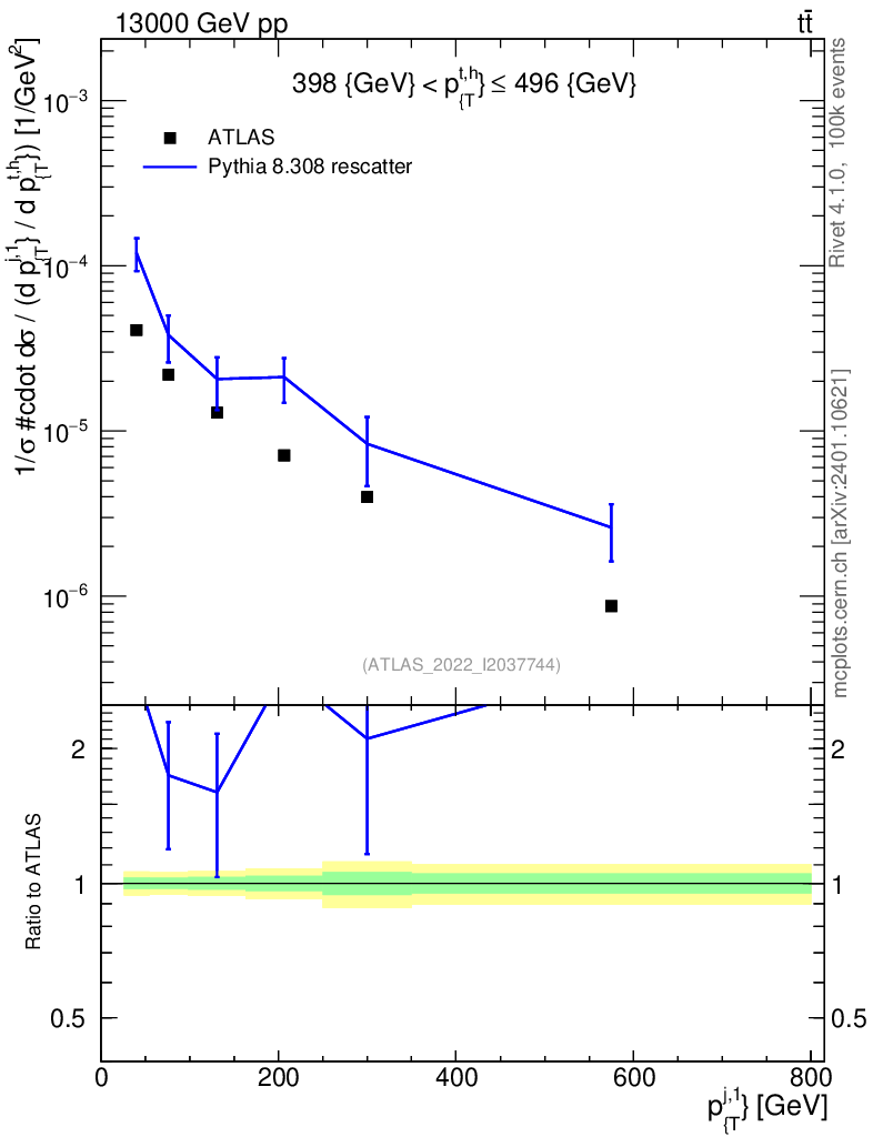 Lines: data, pythia8 8.308 rescatter |