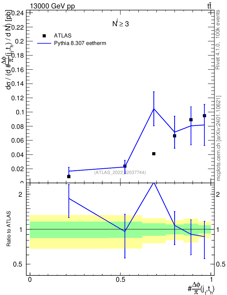 Lines: data, pythia8 8.307 eetherm |