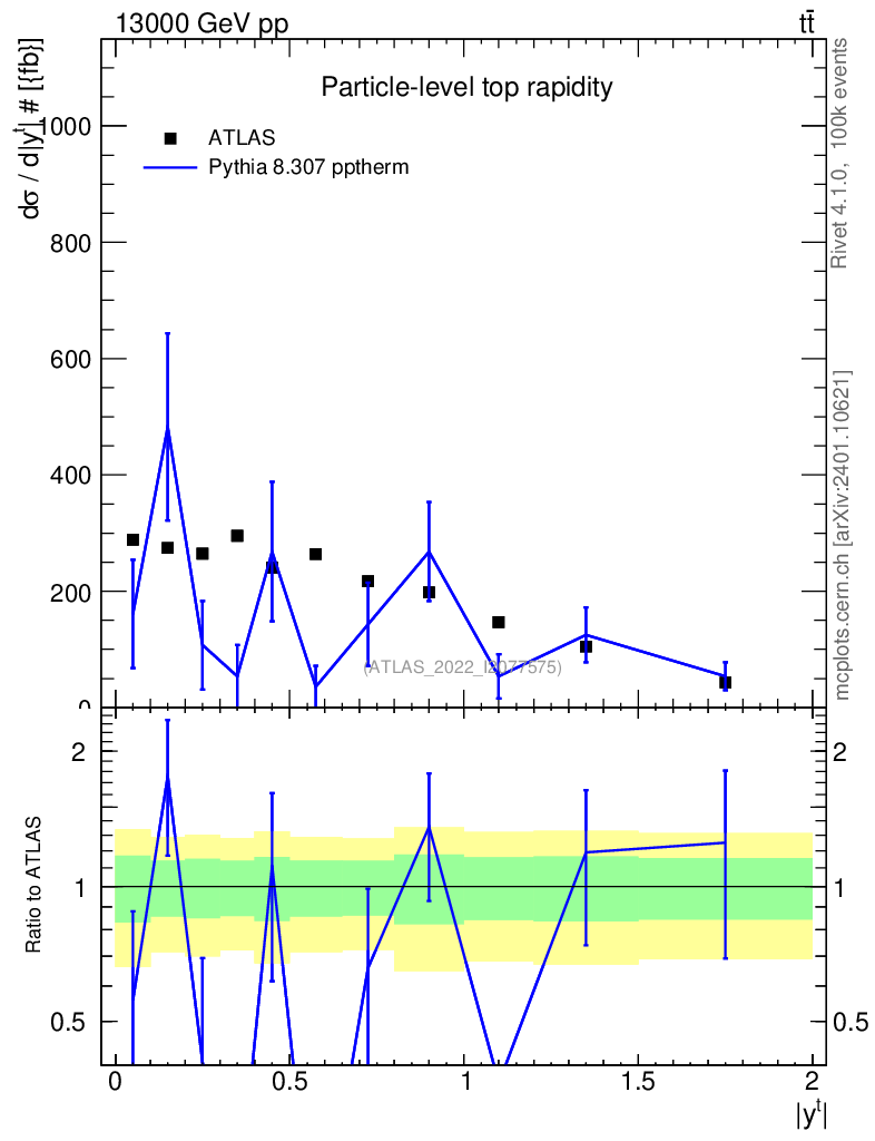 Lines: data, pythia8 8.307 pptherm |