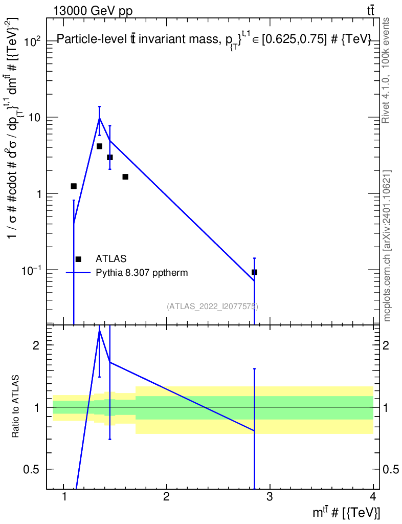 Lines: data, pythia8 8.307 pptherm |