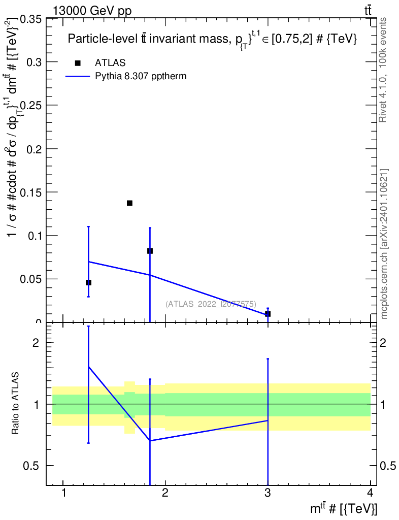 Lines: data, pythia8 8.307 pptherm |