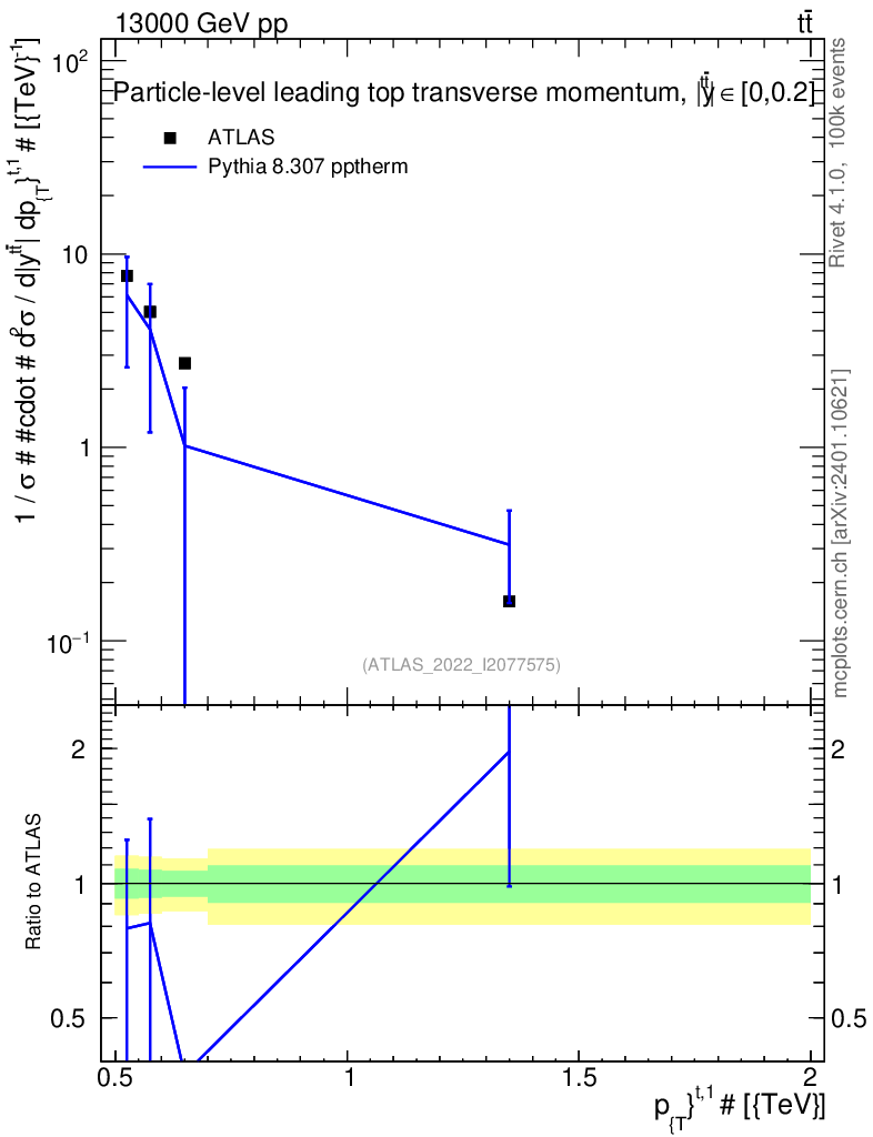 Lines: data, pythia8 8.307 pptherm |