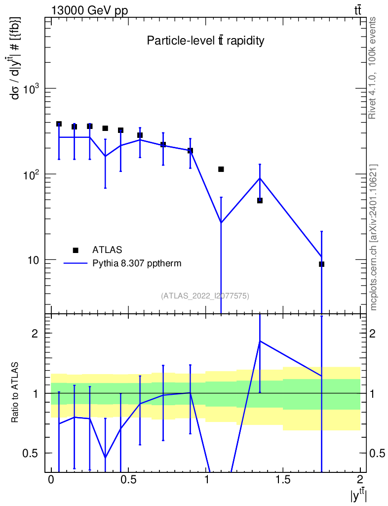 Lines: data, pythia8 8.307 pptherm |