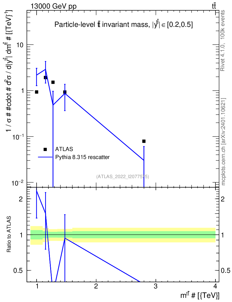 Lines: data, pythia8 8.315 rescatter |