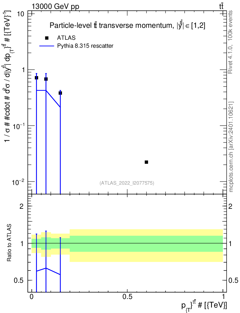 Lines: data, pythia8 8.315 rescatter |