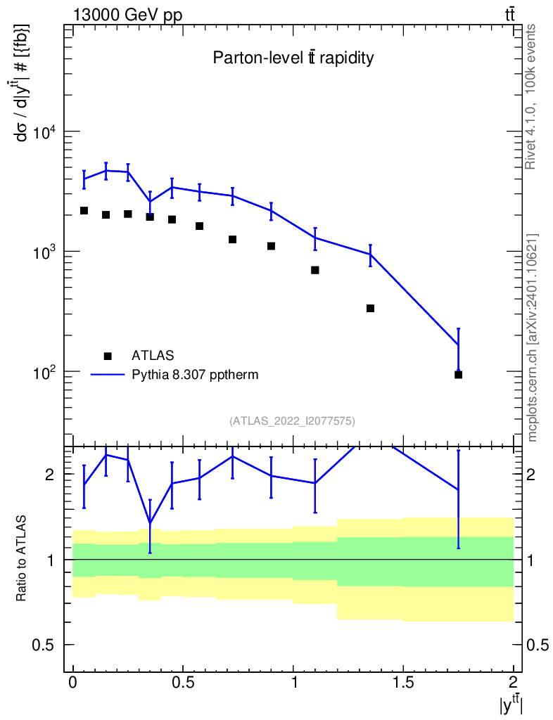 Lines: data, pythia8 8.307 pptherm |
