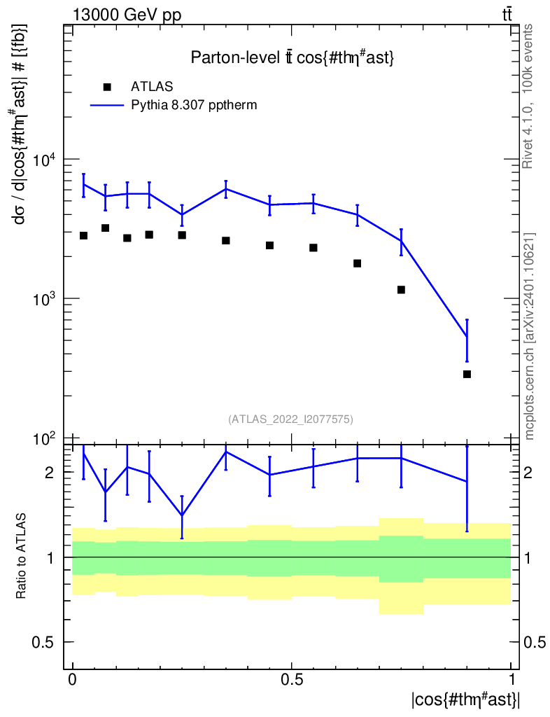 Lines: data, pythia8 8.307 pptherm |