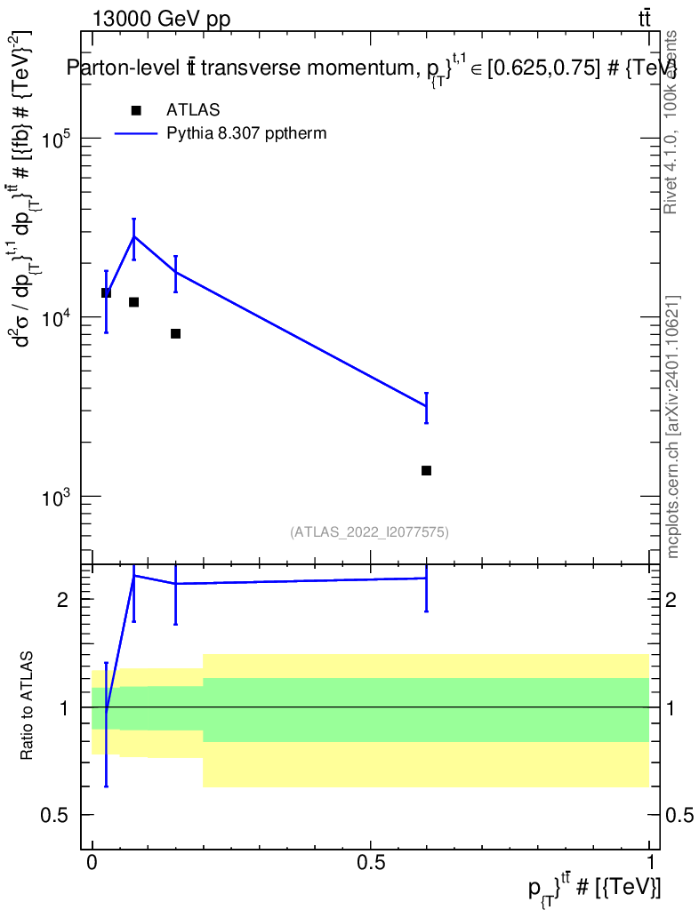 Lines: data, pythia8 8.307 pptherm |