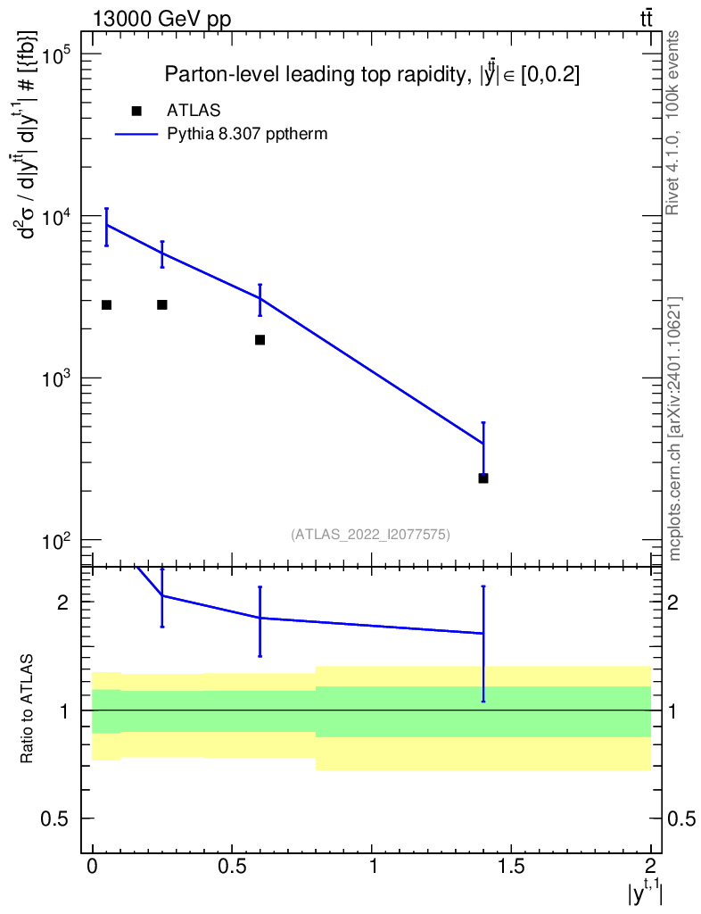 Lines: data, pythia8 8.307 pptherm |