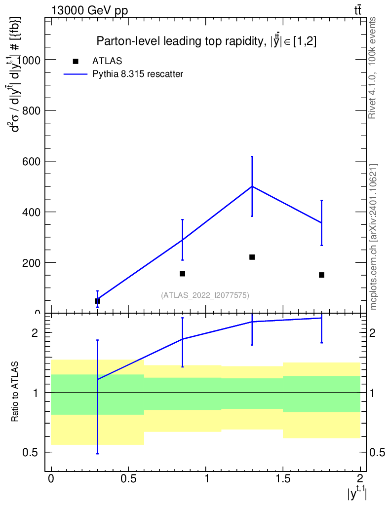 Lines: data, pythia8 8.315 rescatter |