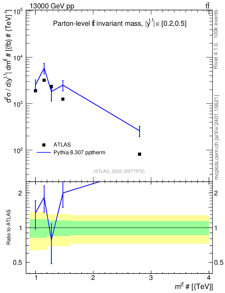 Lines: data, pythia8 8.307 pptherm |