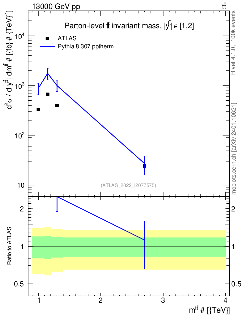 Lines: data, pythia8 8.307 pptherm |