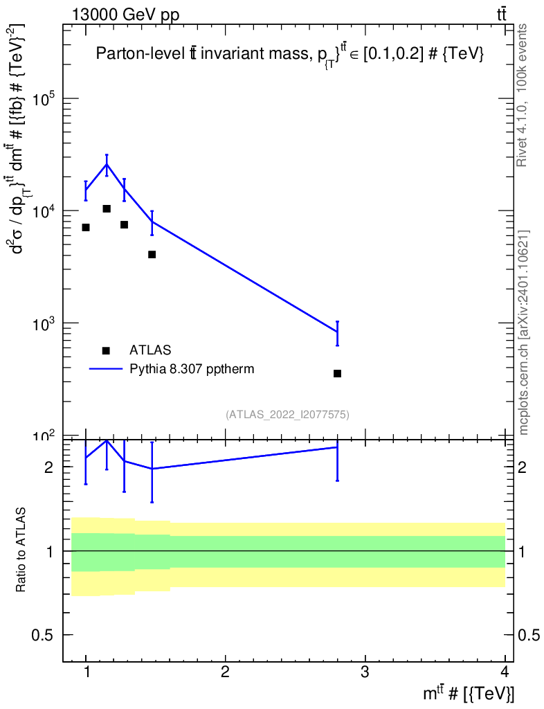 Lines: data, pythia8 8.307 pptherm |
