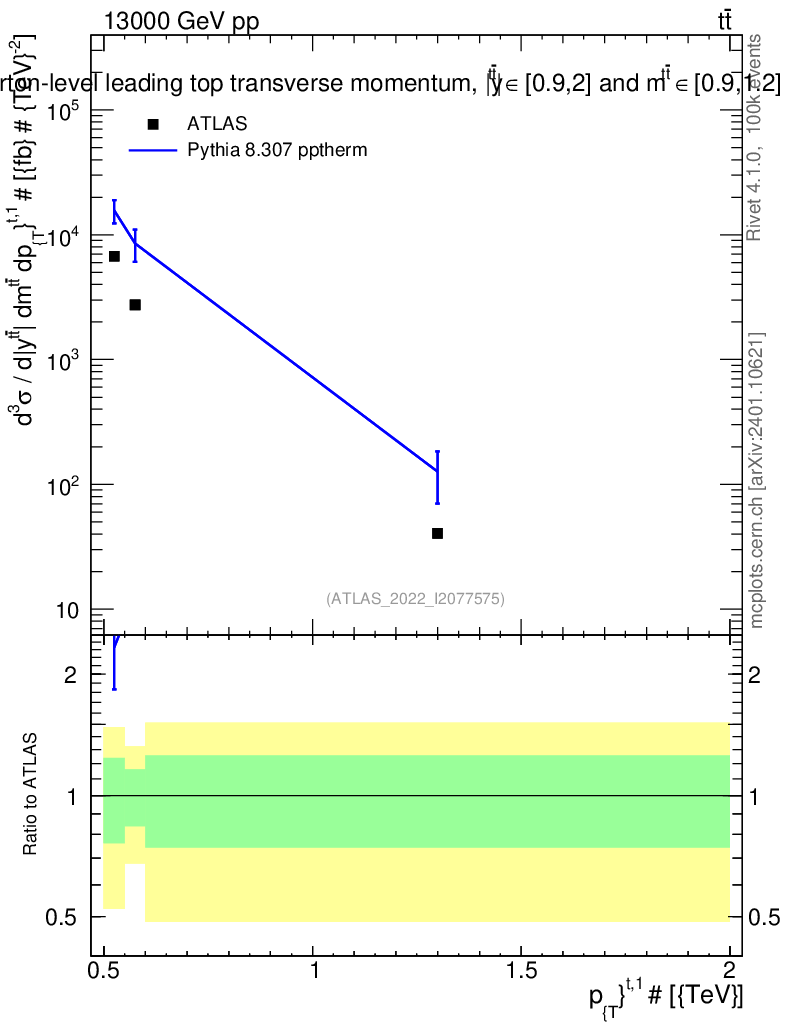Lines: data, pythia8 8.307 pptherm |