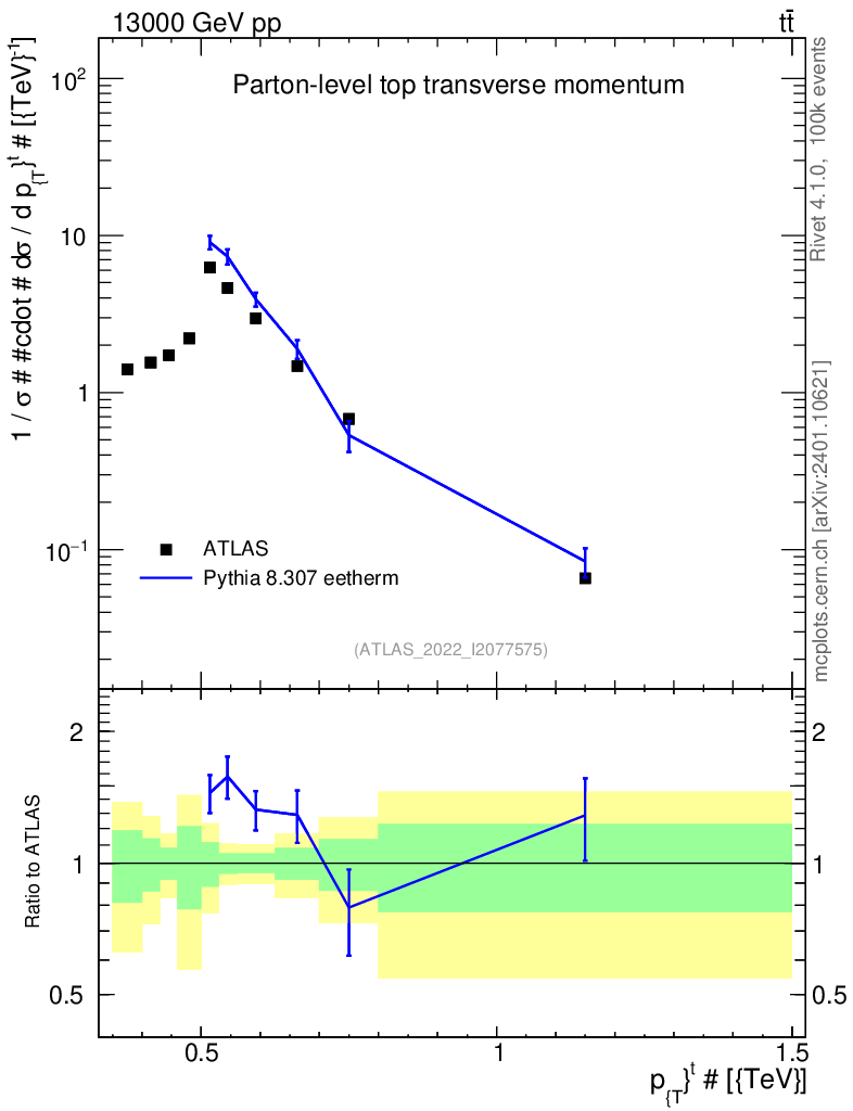 Lines: data, pythia8 8.307 eetherm |