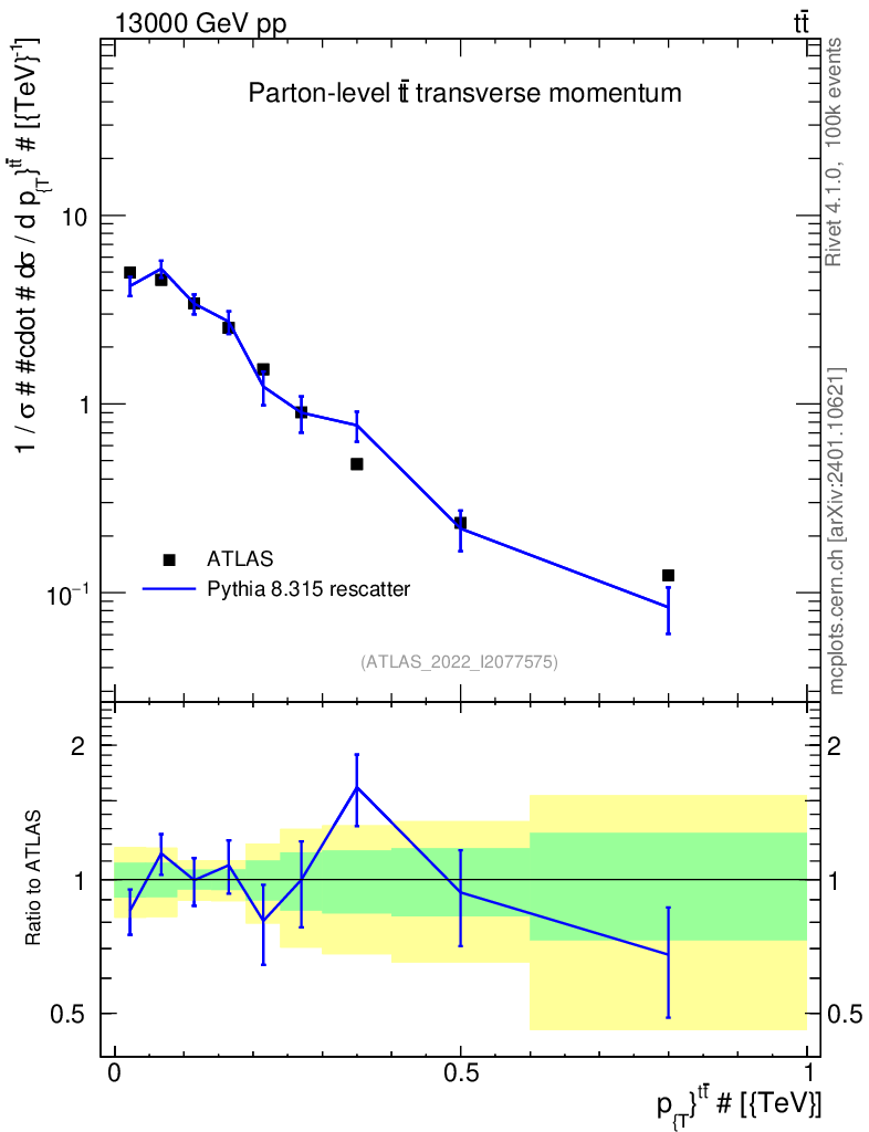 Lines: data, pythia8 8.315 rescatter |