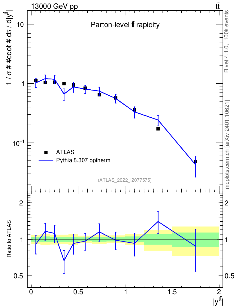 Lines: data, pythia8 8.307 pptherm |