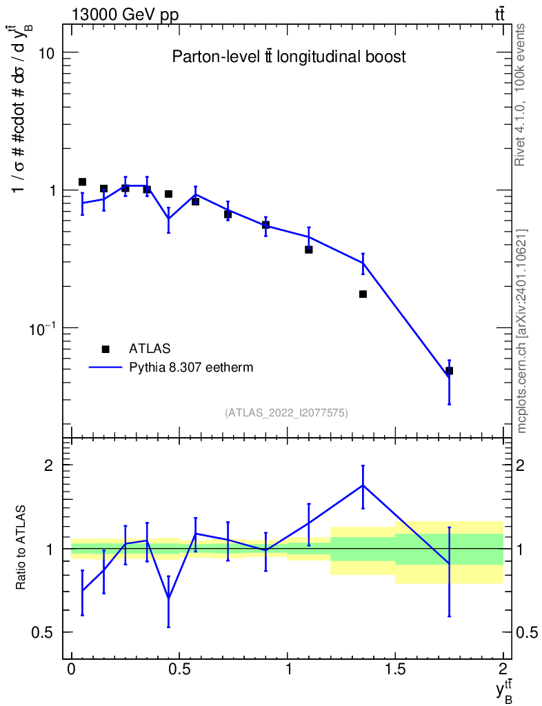 Plot of ttbar.yboost in 13000 GeV pp collisions