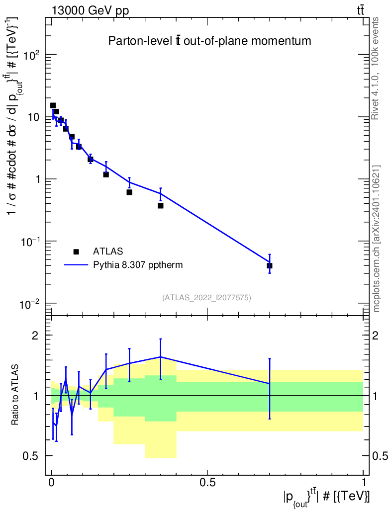 Lines: data, pythia8 8.307 pptherm |