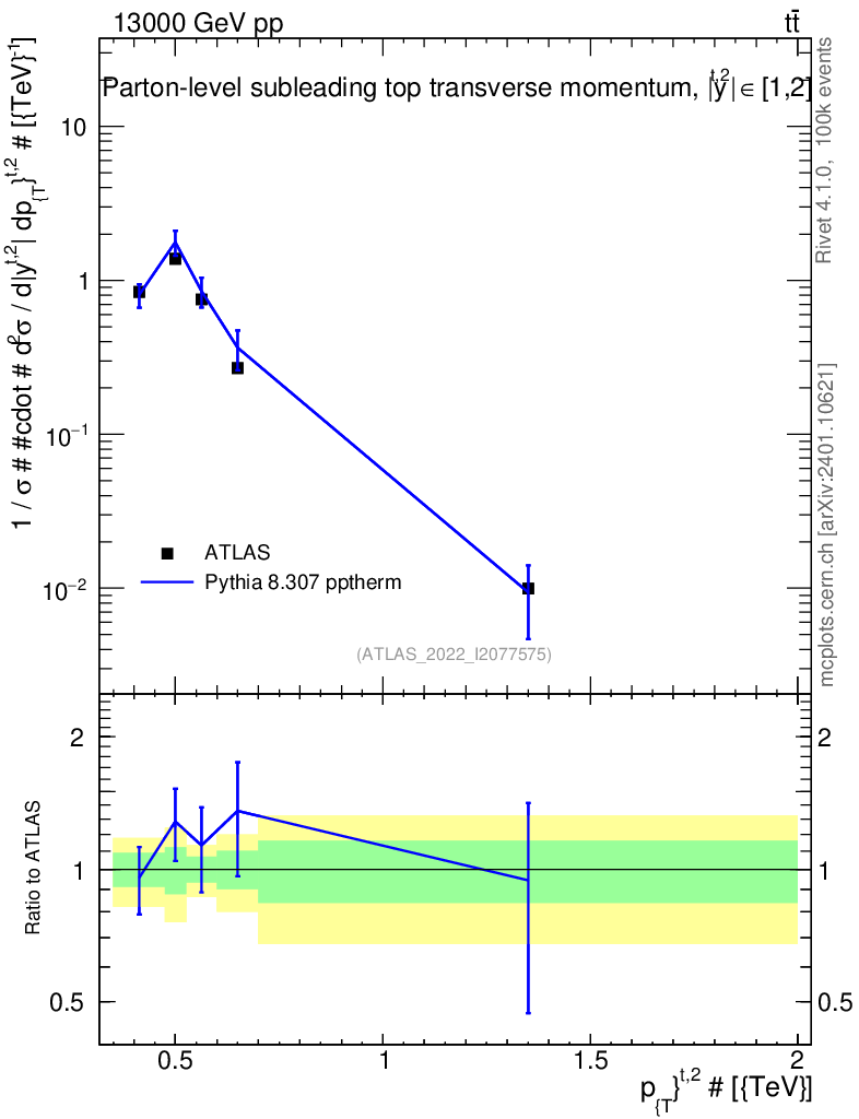 Lines: data, pythia8 8.307 pptherm |