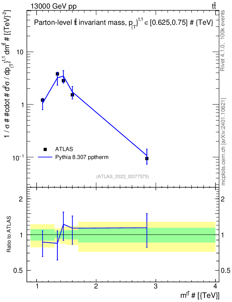 Lines: data, pythia8 8.307 pptherm |