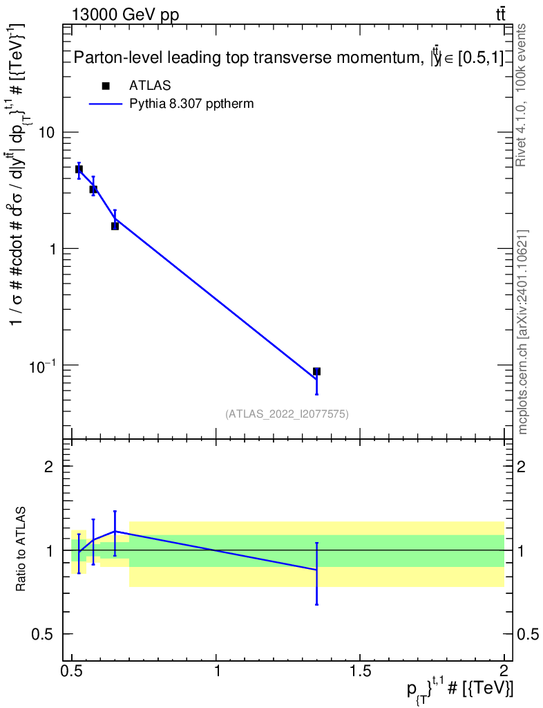 Lines: data, pythia8 8.307 pptherm |