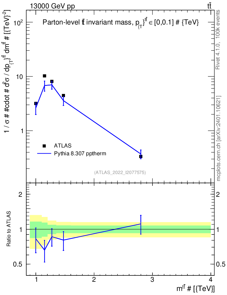 Lines: data, pythia8 8.307 pptherm |