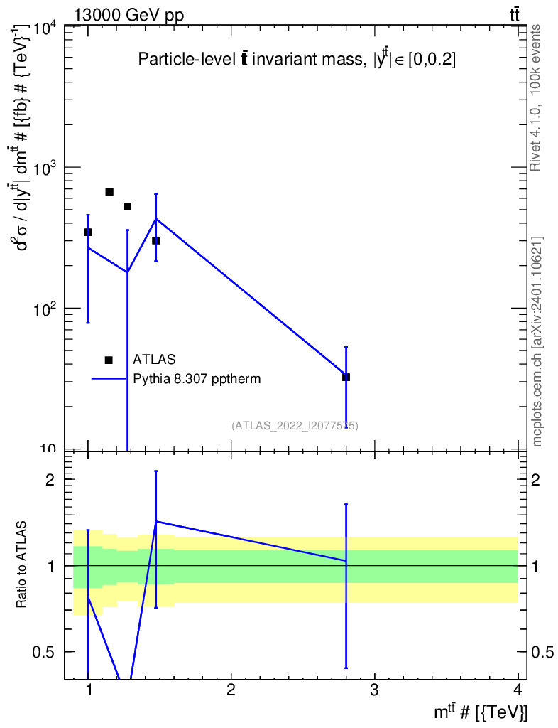 Lines: data, pythia8 8.307 pptherm |