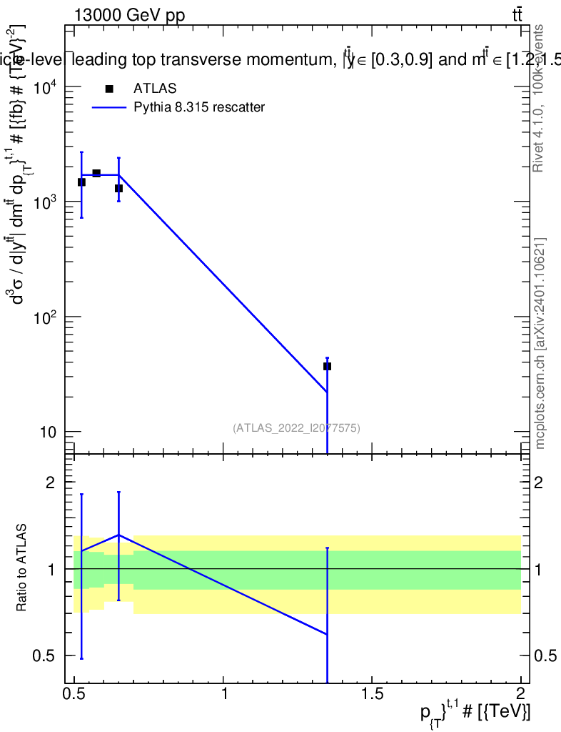 Lines: data, pythia8 8.315 rescatter |