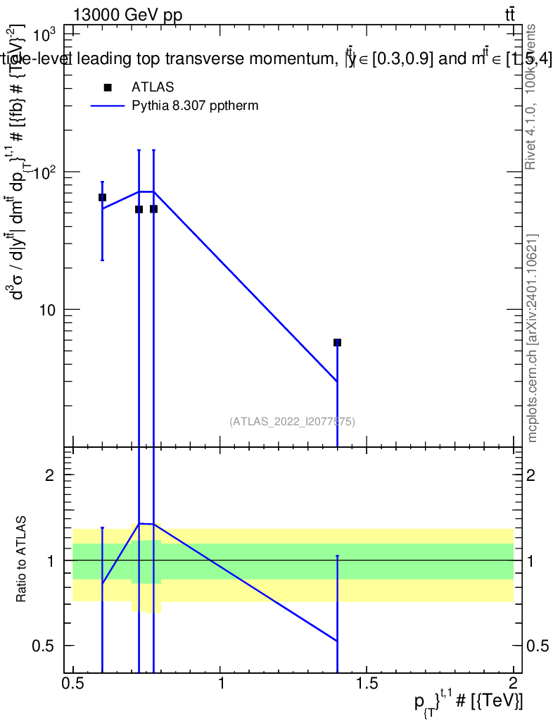 Lines: data, pythia8 8.307 pptherm |