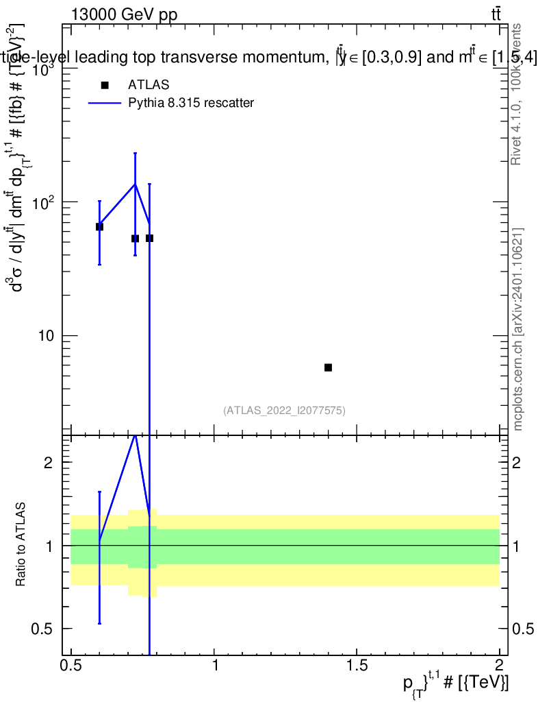 Lines: data, pythia8 8.315 rescatter |