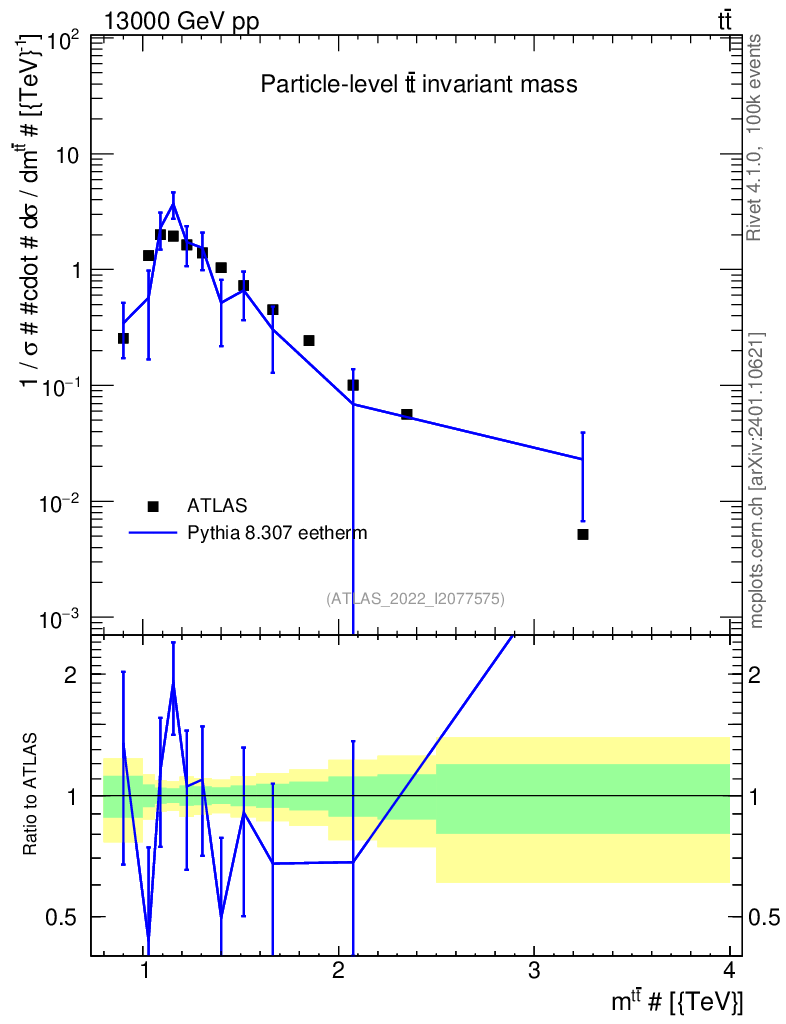 Lines: data, pythia8 8.307 eetherm |