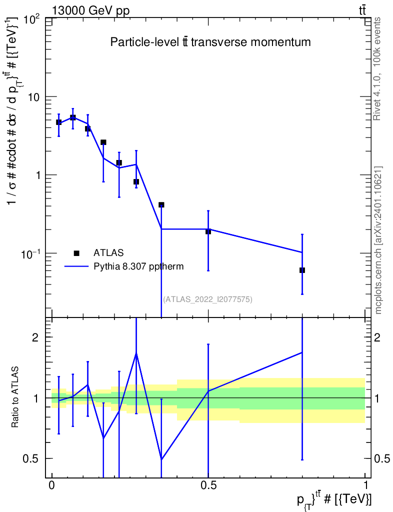 Lines: data, pythia8 8.307 pptherm |