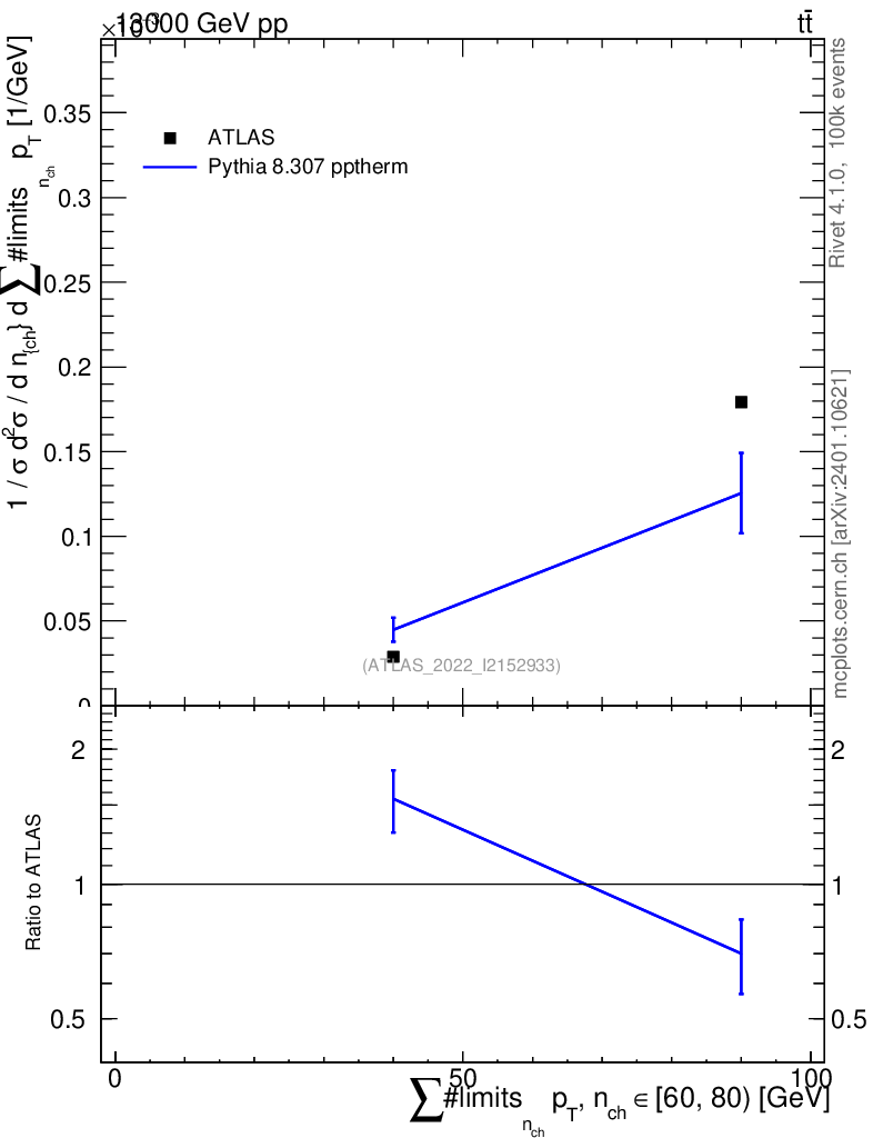 Lines: data, pythia8 8.307 pptherm |