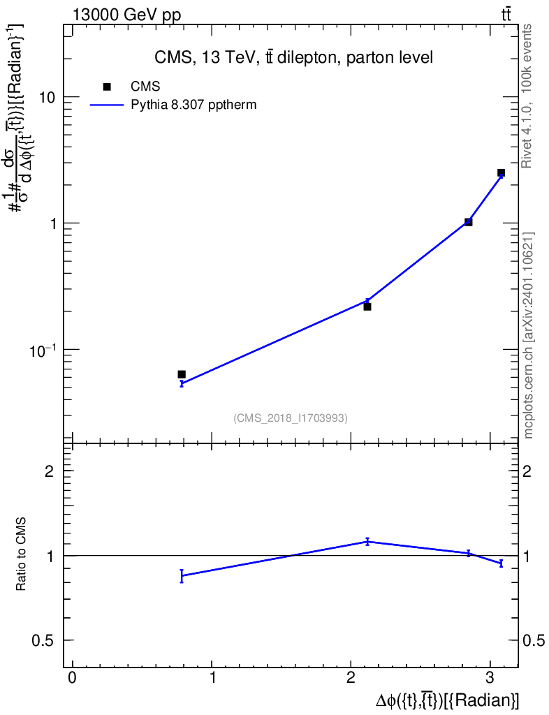 Lines: data, pythia8 8.307 pptherm |