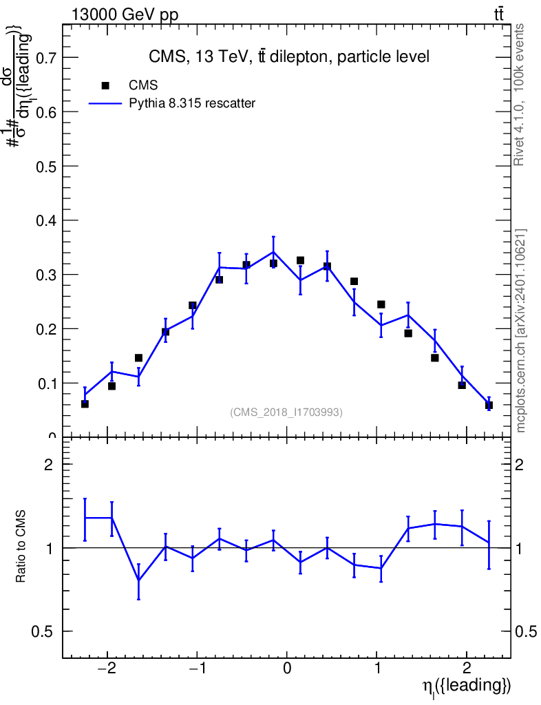 Lines: data, pythia8 8.315 rescatter |