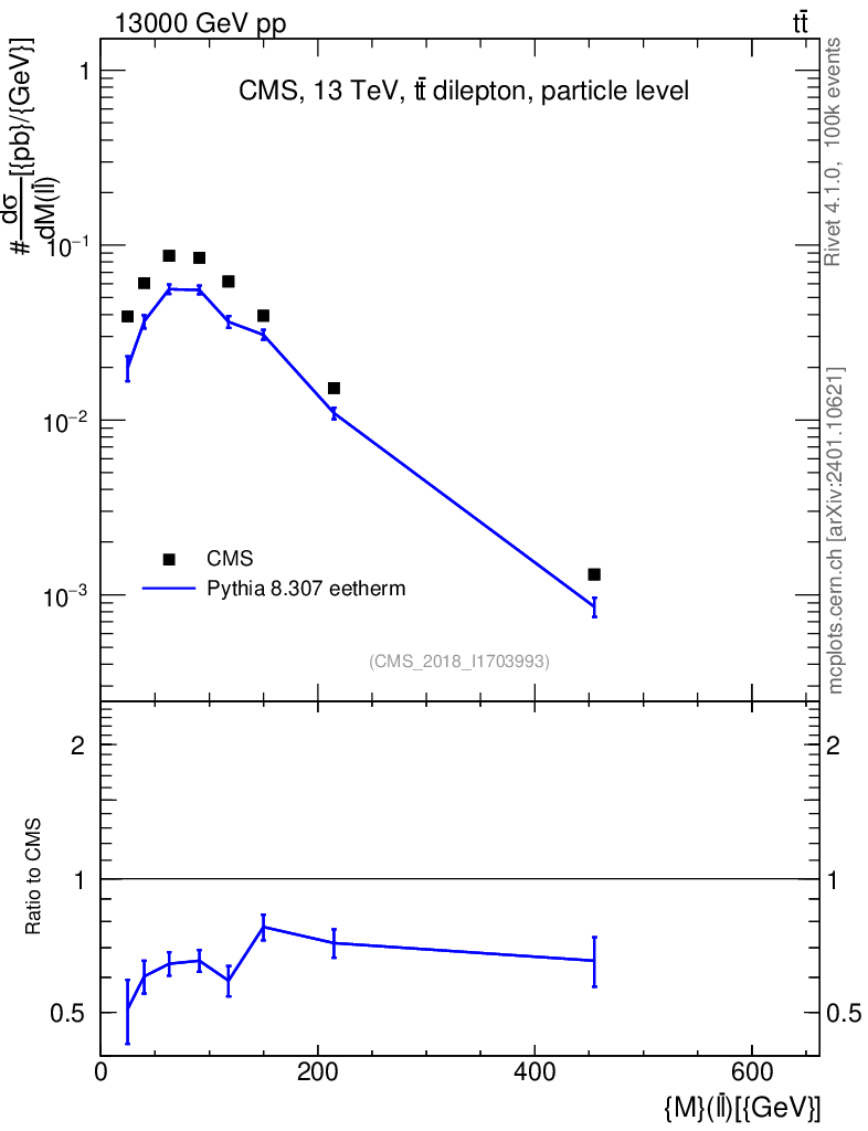 Lines: data, pythia8 8.307 eetherm |
