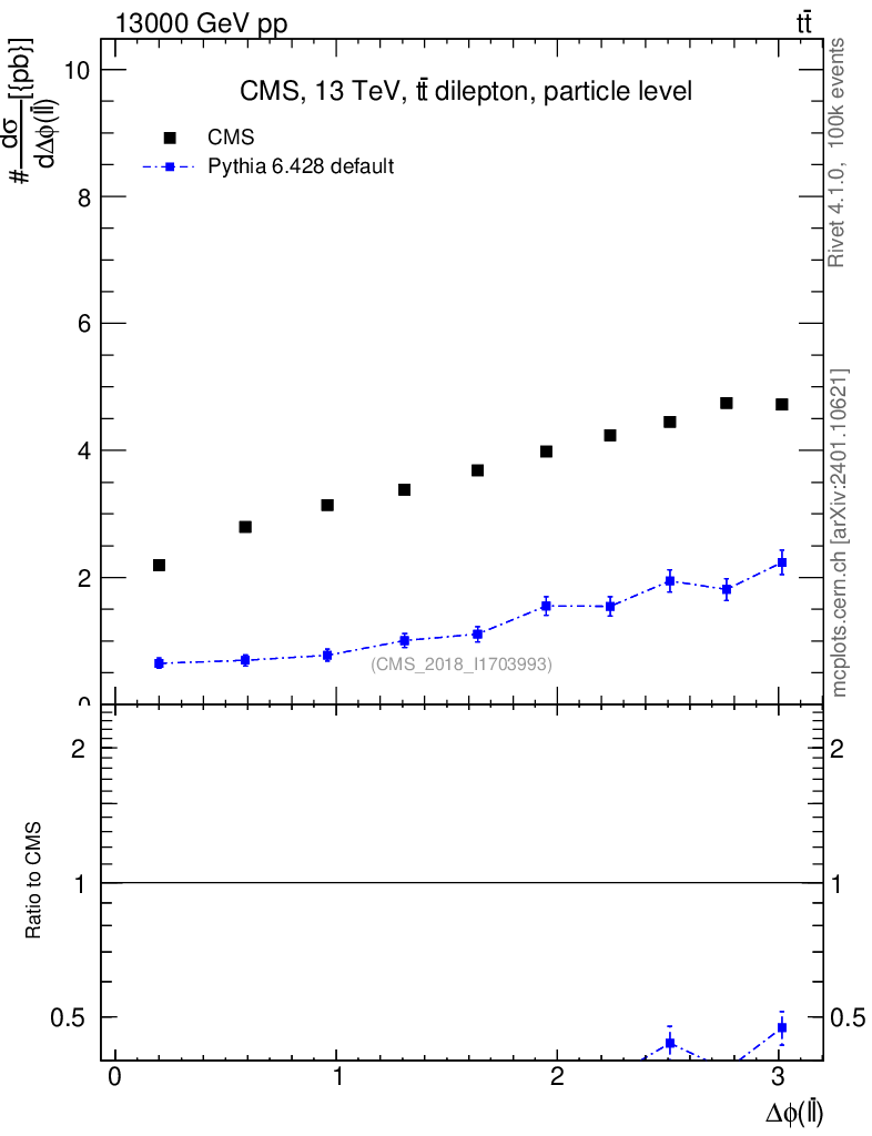 Lines: data, pythia6 6.428 default |