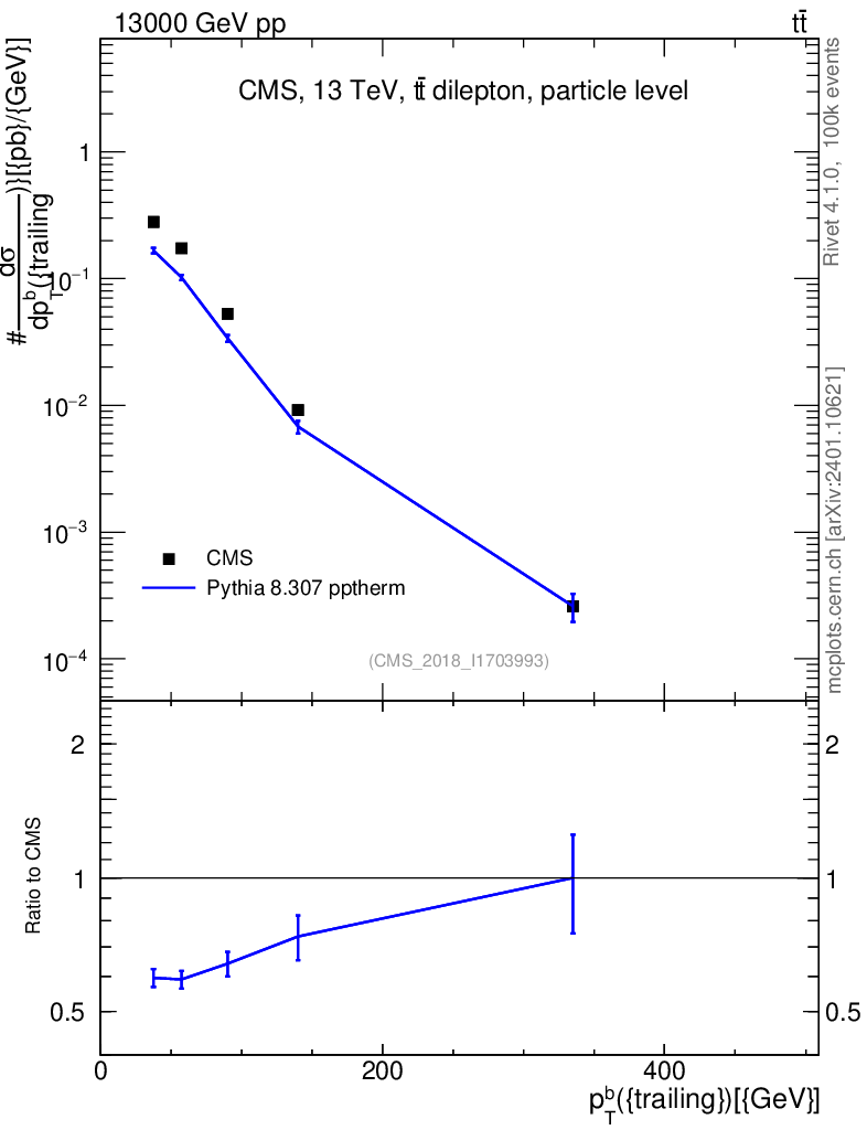 Lines: data, pythia8 8.307 pptherm |