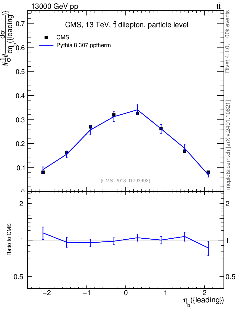 Lines: data, pythia8 8.307 pptherm |