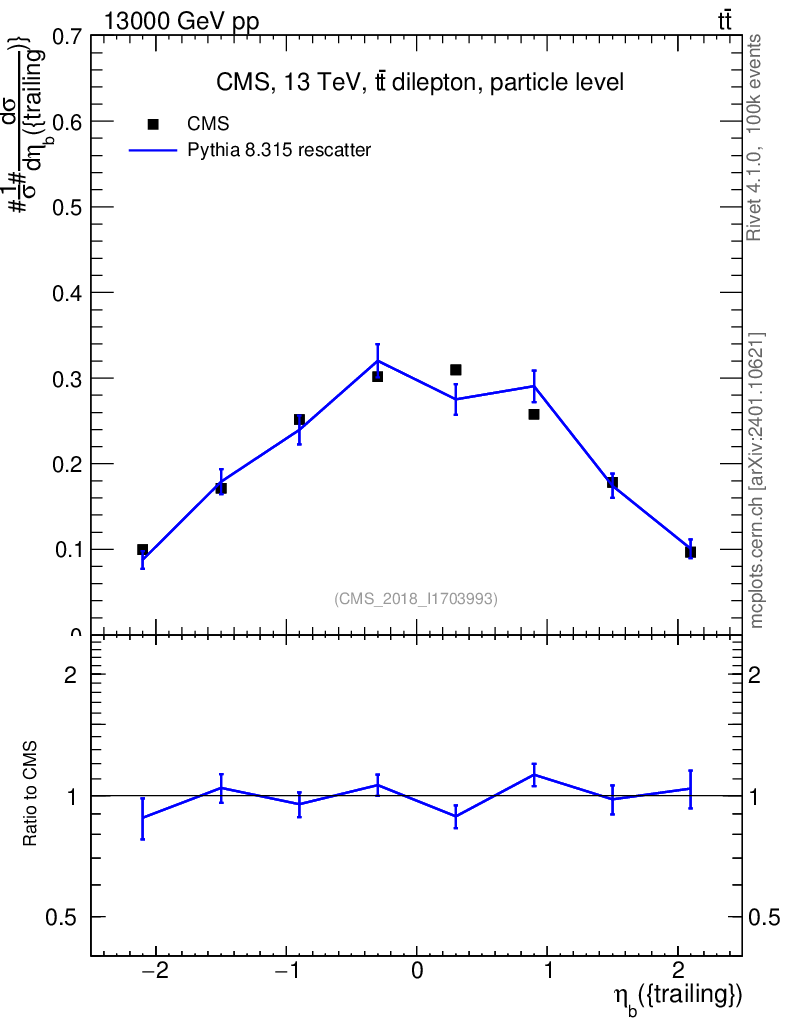 Lines: data, pythia8 8.315 rescatter |