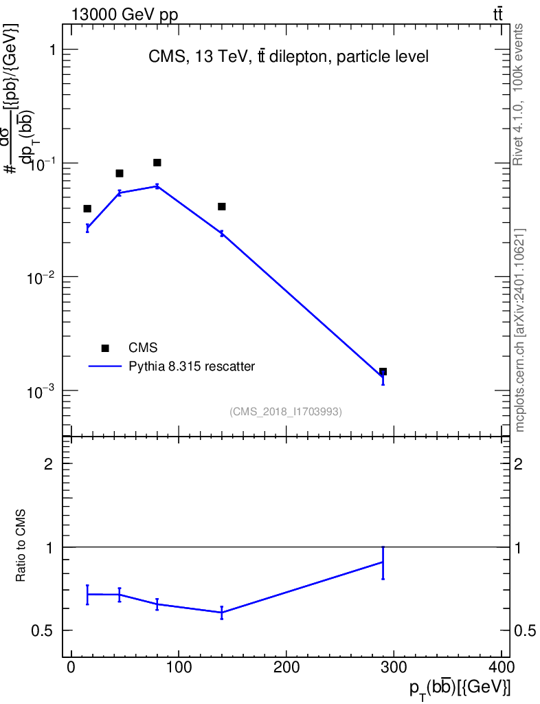 Lines: data, pythia8 8.315 rescatter |
