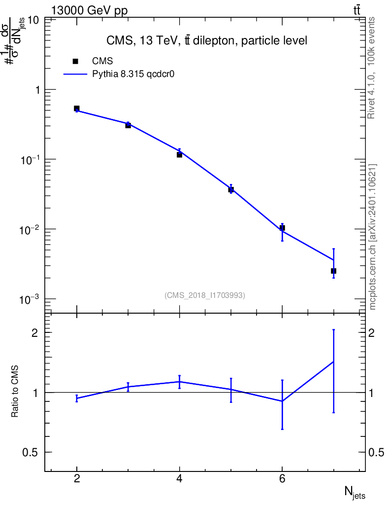 Lines: data, pythia8 8.315 qcdcr0 |