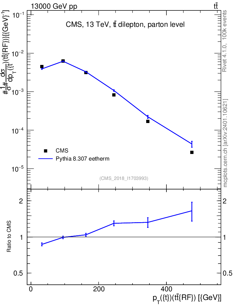 Plot of top.pt.ttbarRF in 13000 GeV pp collisions